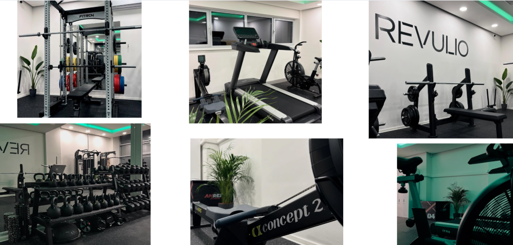 Kompletná realizácia: Gumená podlaha puzzle v celom priestore, kladková veža na mieru - unikátne riešenie okolo stĺpu, racky na mieru s monkeybarom od FITRON. Kardio zóna tvorená z Concept 2 - veslárske trenažéry ROW ERG a stacionárne bicykle BIKE ERG. Stojany na mieru Fitron vypĺňajú kompletné sady hex jednoručiek, kettlebellov, slam ball a wall ball lôpt, olympijské tyče, bumper kotúče a drobné príslušenstvo.
